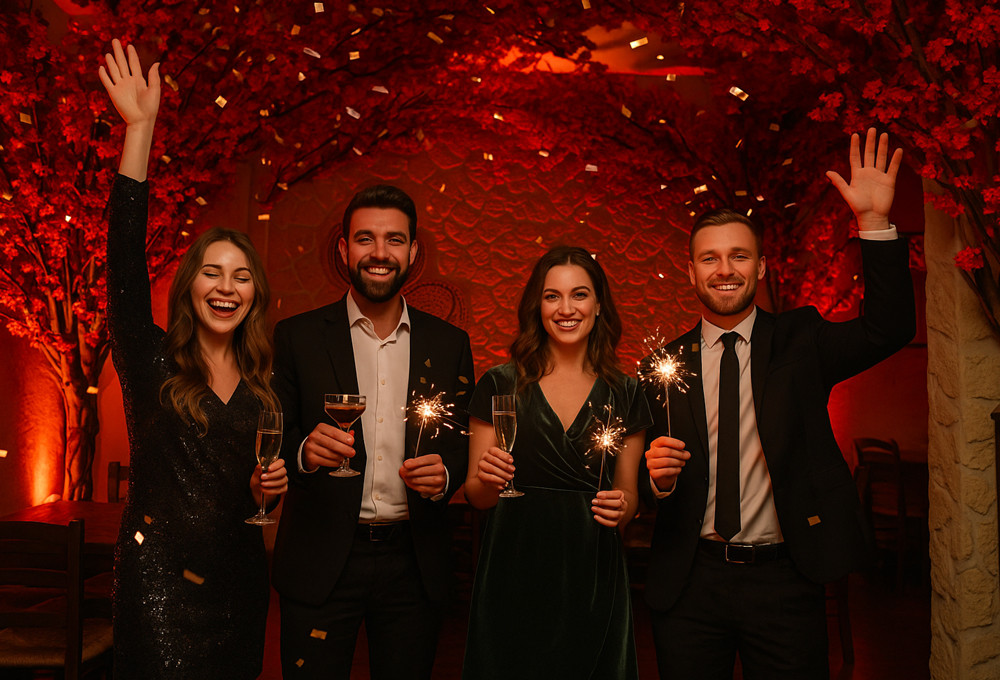 Welcome 2026 with a 3-course celebration menu, live show & plate smashing, and a midnight countdown that lifts the roof.